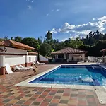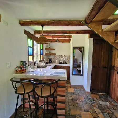 Hospedaje Resguardo Real villa includes an equipped kitchenette, as well as a dining area for self-catering. There is also a toaster, a cooktop, and glassware available in the kitchen. The Raquira property offers guests to enjoy bicycle usage, or relax by an outdoor swimming pool.